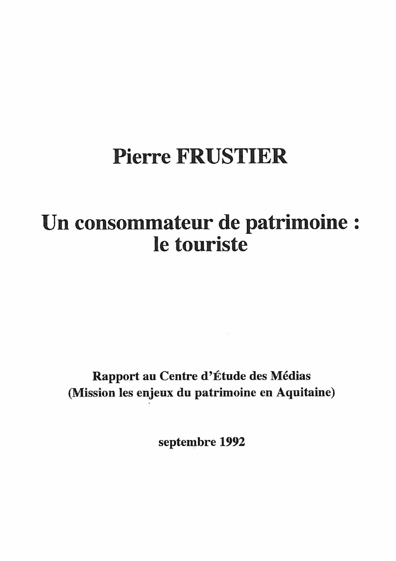 Rapport aux Centre d’Etudes des Médias de l’Université de Bordeaux 3 dans le cadre de la mission CNRS « Les enjeux du patrimoine en Aquitaine ».