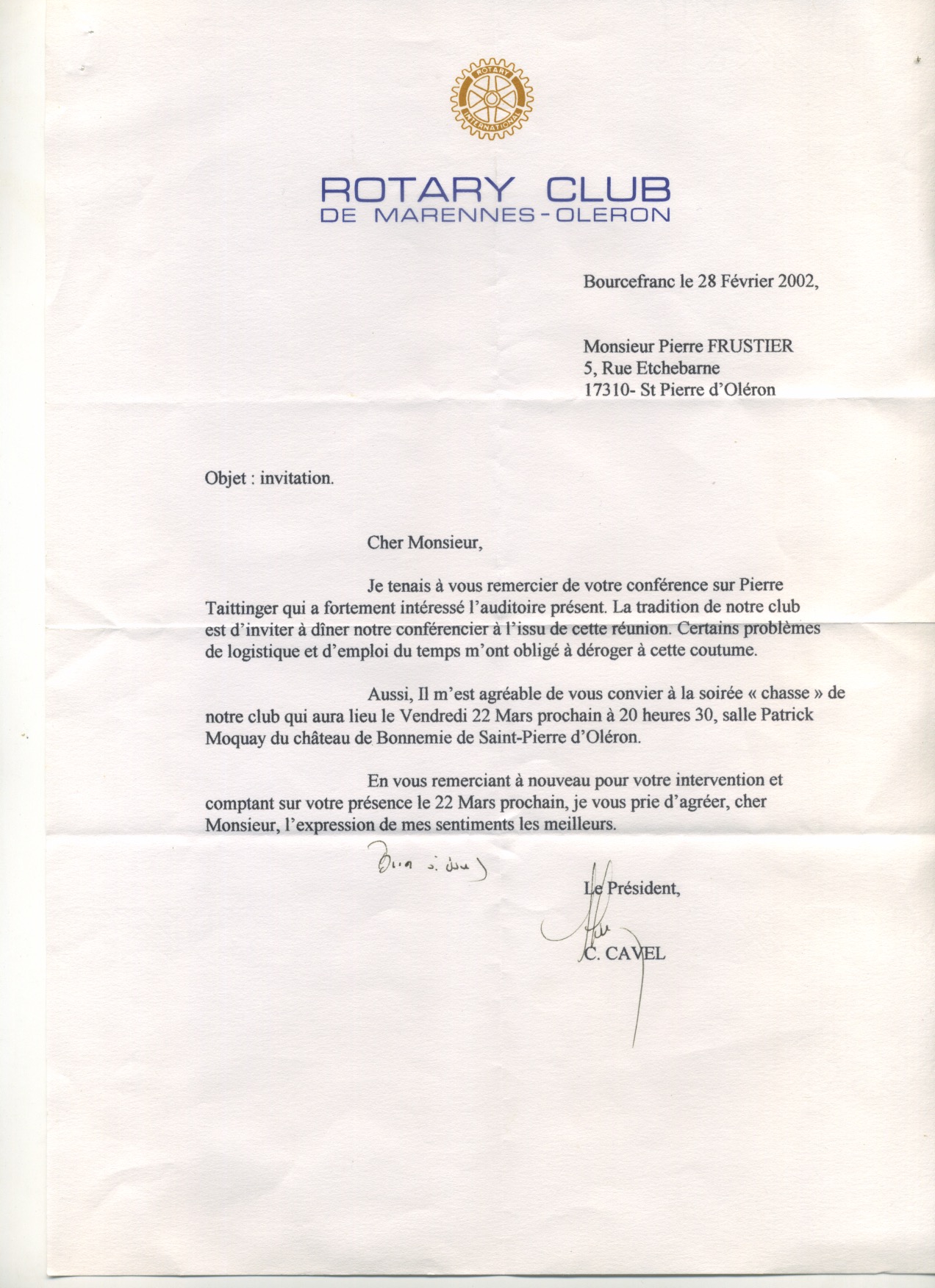 Causerie donnée au Rotary club de Marennes Oleron sur mon livre biographie de Pierre Taittinger