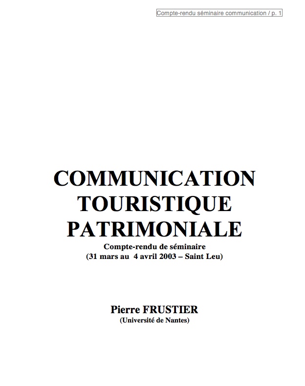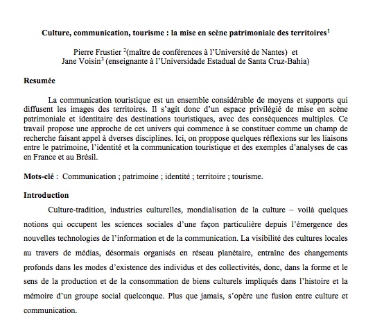 2004 : Culture, communication, tourisme : la mise en scène du patrimoine des territoires