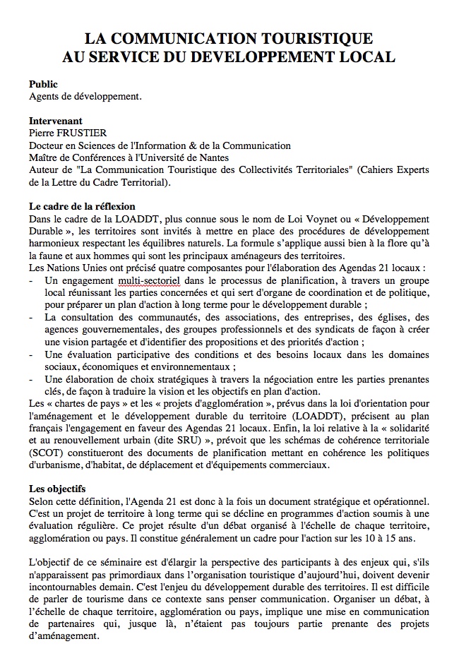 2011 : La communication comme révélateur de l’identité d’un territoire : le cas de la communication touristique