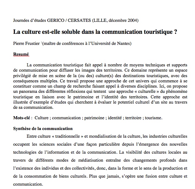 2004 : La culture est-elle soluble dans la communication touristique ?