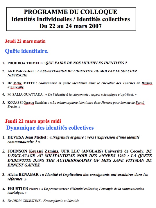 colloque « Identités individuelles / Identités collectives » (Université d’Abidjan)