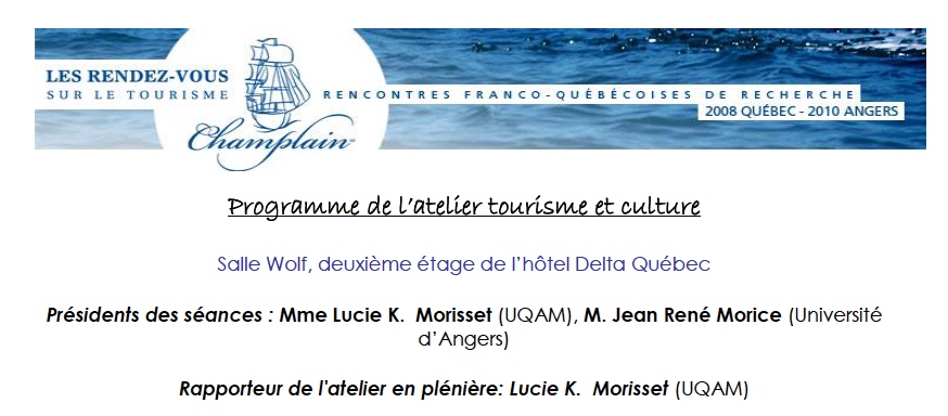 Communication dans le cadre des Rendez-vous Champlain sur le tourisme, colloque organisé par l’Université de Québec (Canada)