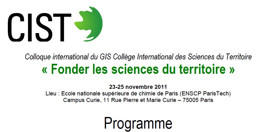 Colloque du CIST (Collège International des Sciences du territoire) « Fonder les sciences du territoire » (Paris)