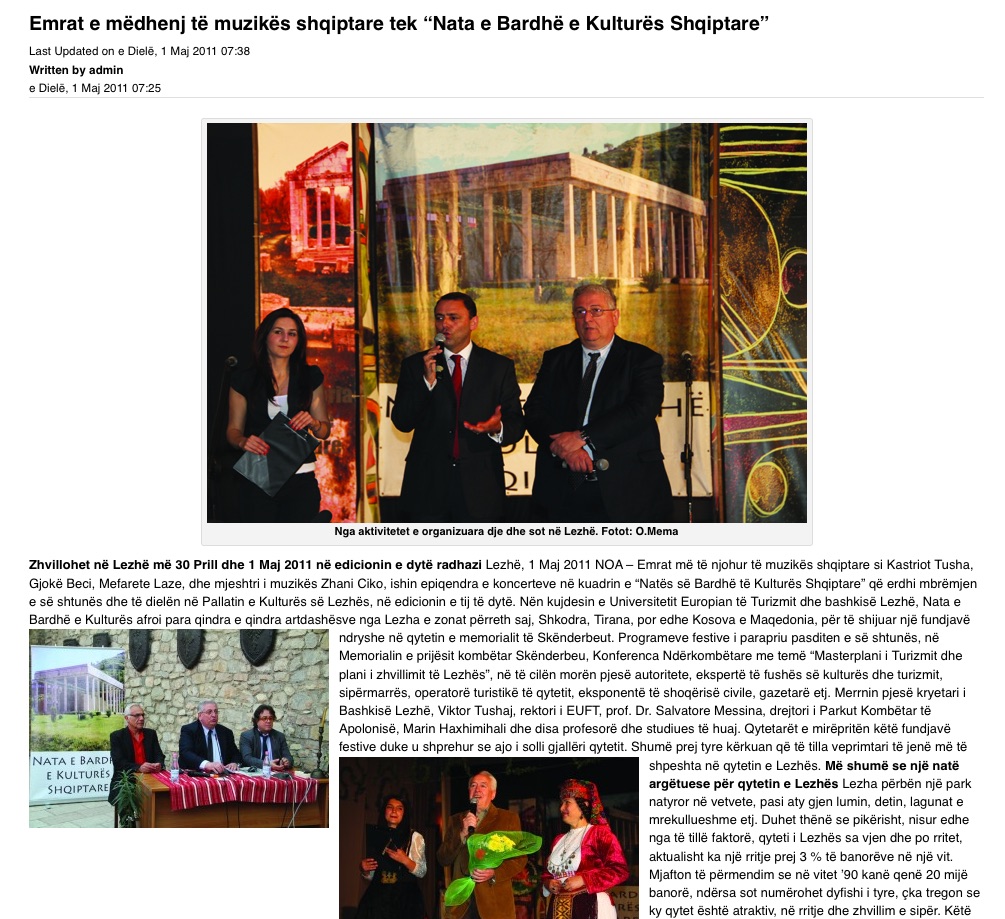 Conférence dans le cadre des « Nuits blanches de la culture albanaise » (Lezhë, Albanie)