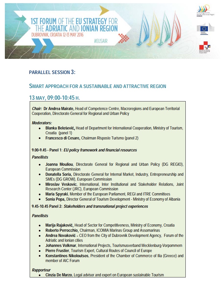 Présentation des itinéraires culturels du Conseil de l’Europe au Forum des stratégies européennes pour la région de l’Adriatique et de la mer Ionienne (Dubrovnik, Croatie)