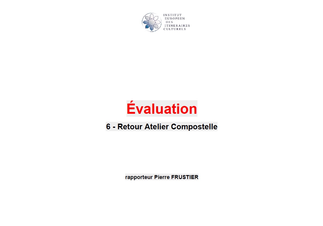 Présentation d’un système d’évaluation des Itinéraires Culturels du Conseil de l’Europe à l’Académie d’été des itinéraires culturels (Compostelle, Espagne). Et synthèse de cette présentation en vue du rapport final.