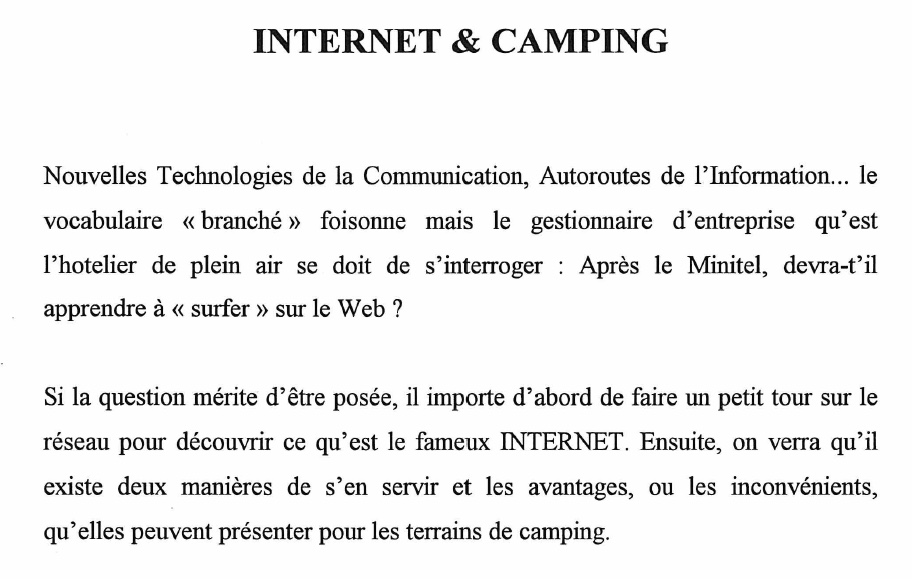 Intervention lors de l’AG du Syndicat de l’Hôtellerie de Plein Air d’Aquitaine (décembre 1996)