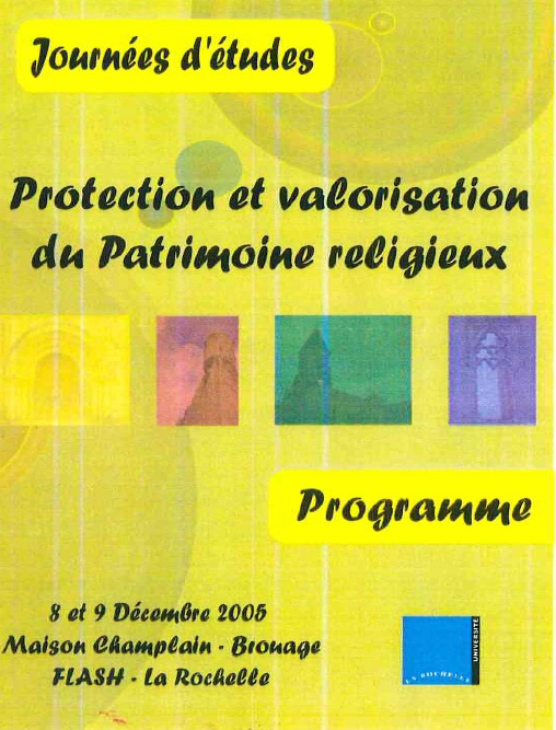 Intervention dans la cadre des journées d’études « Protection et valorisation du patrimoine religieux », organisée par l’université de La Rochelle.