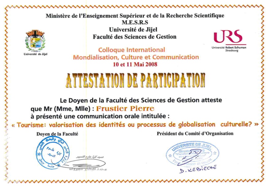 Communication au colloque international de la SFSIC (Société Française des Sciences de l’Information et de la Communication) à l’université de Jijel (Algérie, mai 2008)