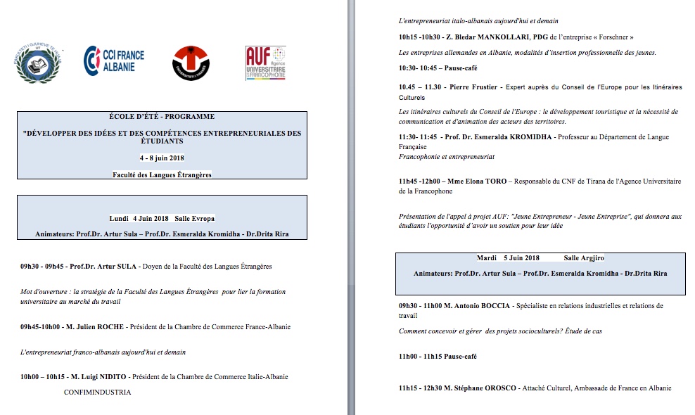 Séminaire « Développer des idées et des compétences entrepreneuriales pour les étudiants », Faculté des langues étrangères, université de Tirana (Albanie, juin 2018).