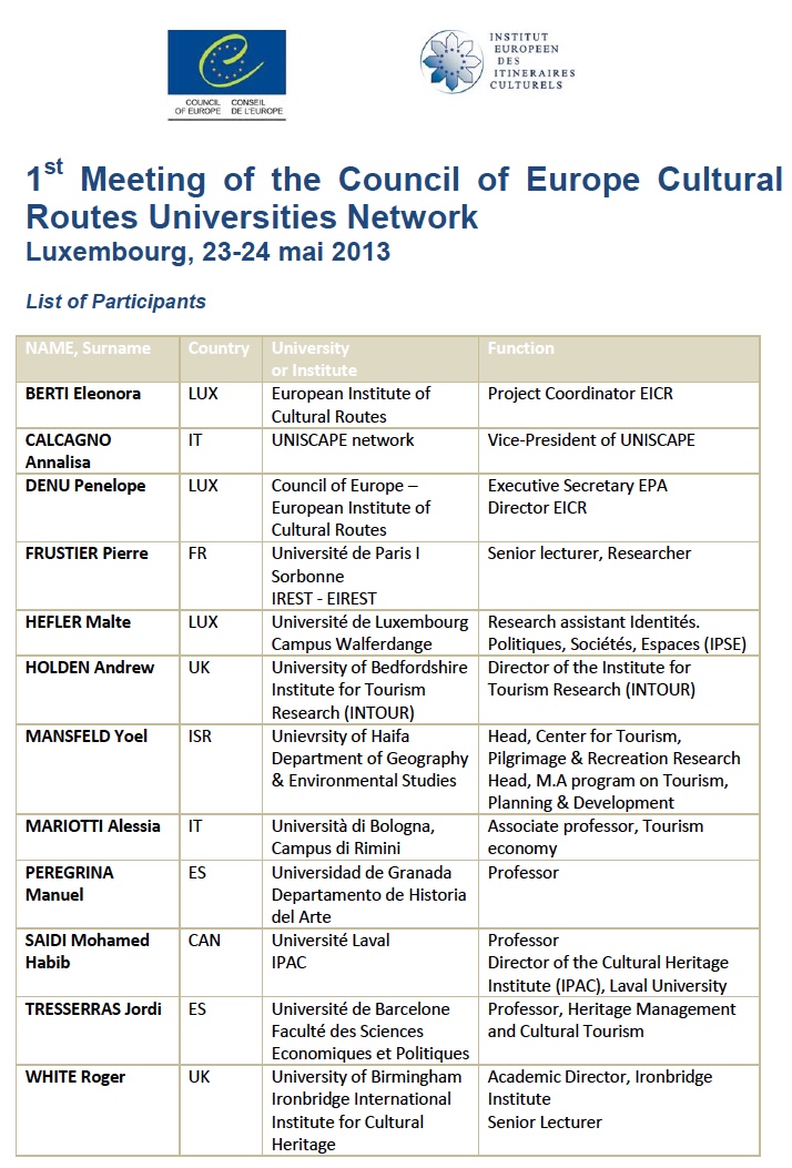 2013 : Rencontre du Réseau des universités des itinéraires culturels du Conseil de l’Europe