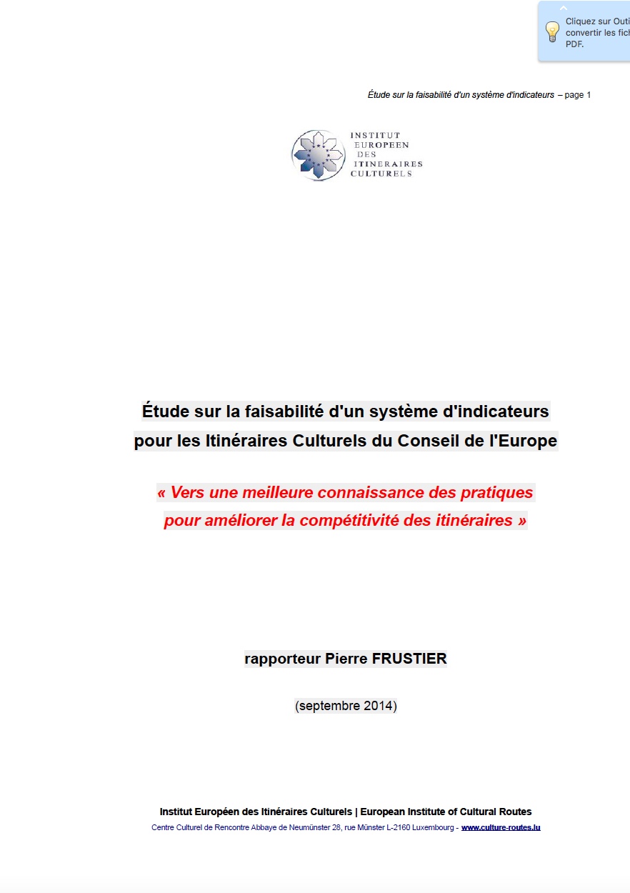 2014 : Étude sur la faisabilité d’un système d’indicateurs pour les Itinéraires Culturels du Conseil de l’Europe